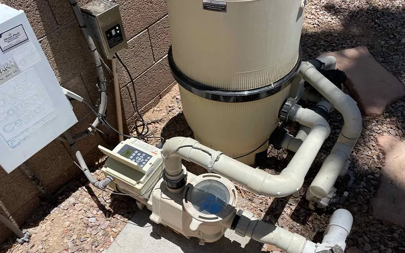 Clean Scottsdale pool equipment pad with pump and filter system showing reliable operation.